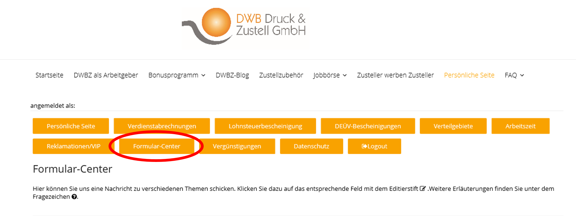 PERSÖNLICHE SEITE | FORMULAR-CENTER