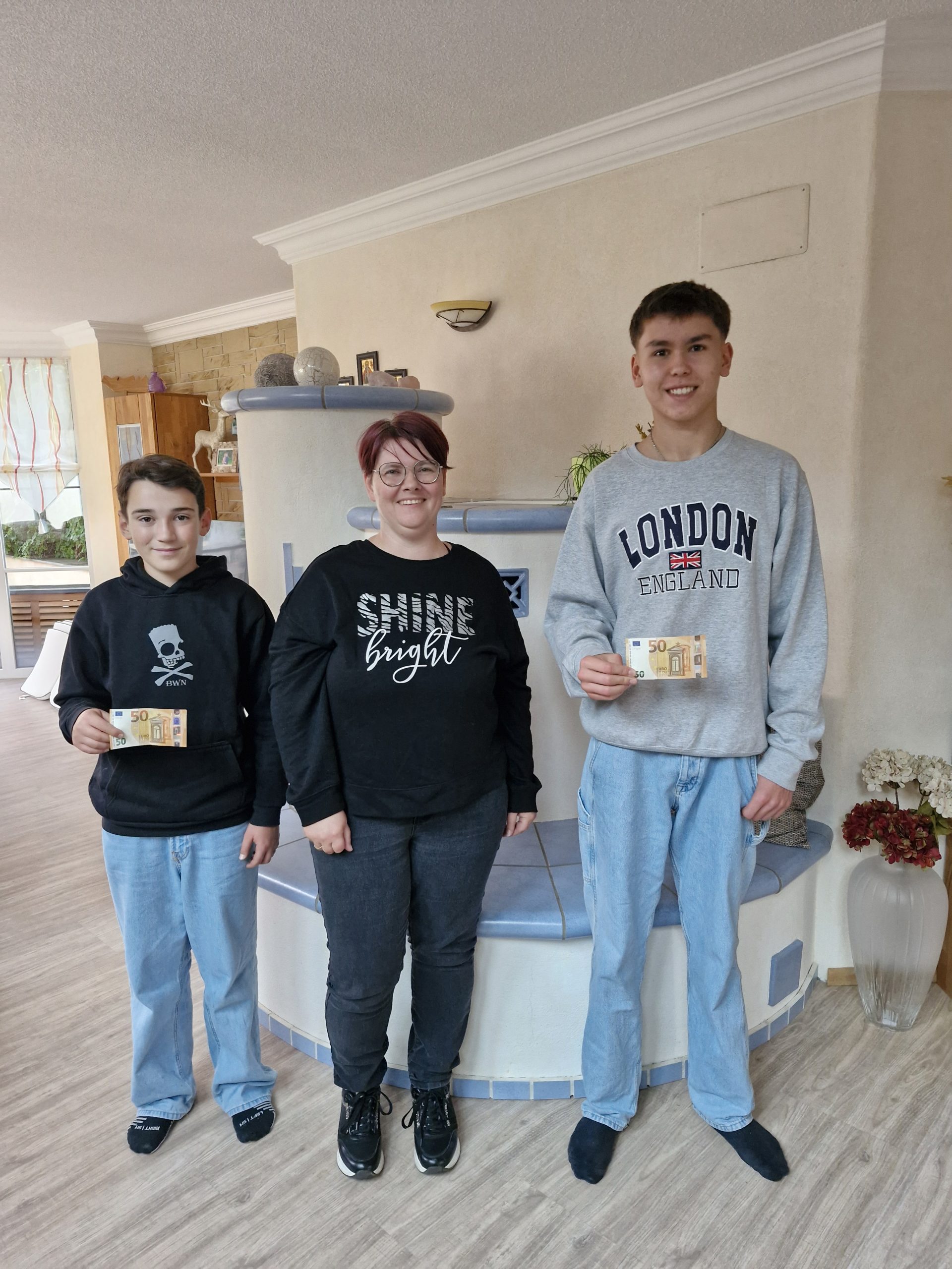 Im Oktober 2024 durften sich Elias und Johannes über je 50,00 Euro freuen – das Geld wurde von unserer Gebietsbetreuerin, Sabine Weiher überreicht.